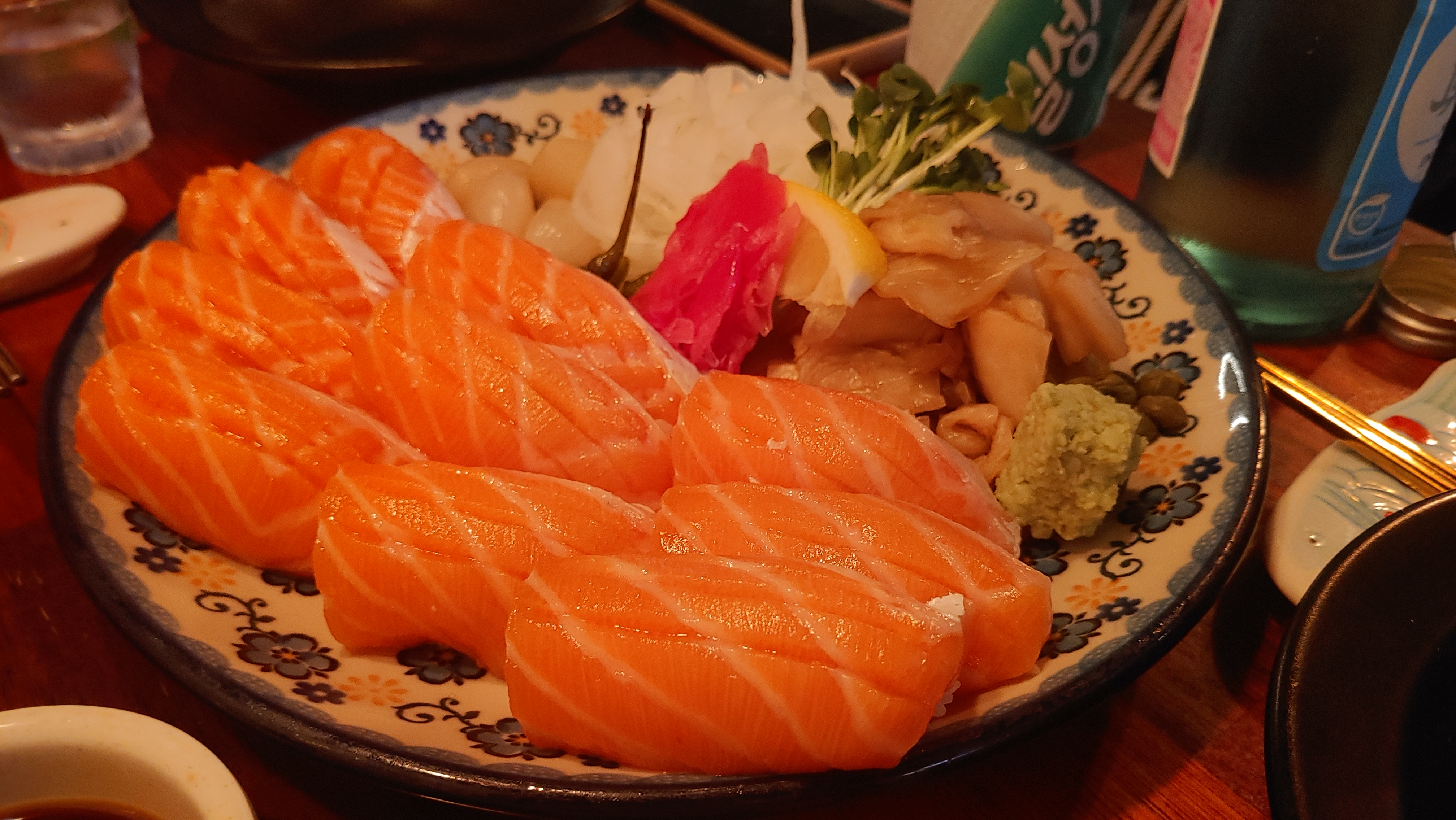 일행은 생연어 모듬, 생연어 초밥, 명란 로제 파스타를 주문해서 먹었는데,
