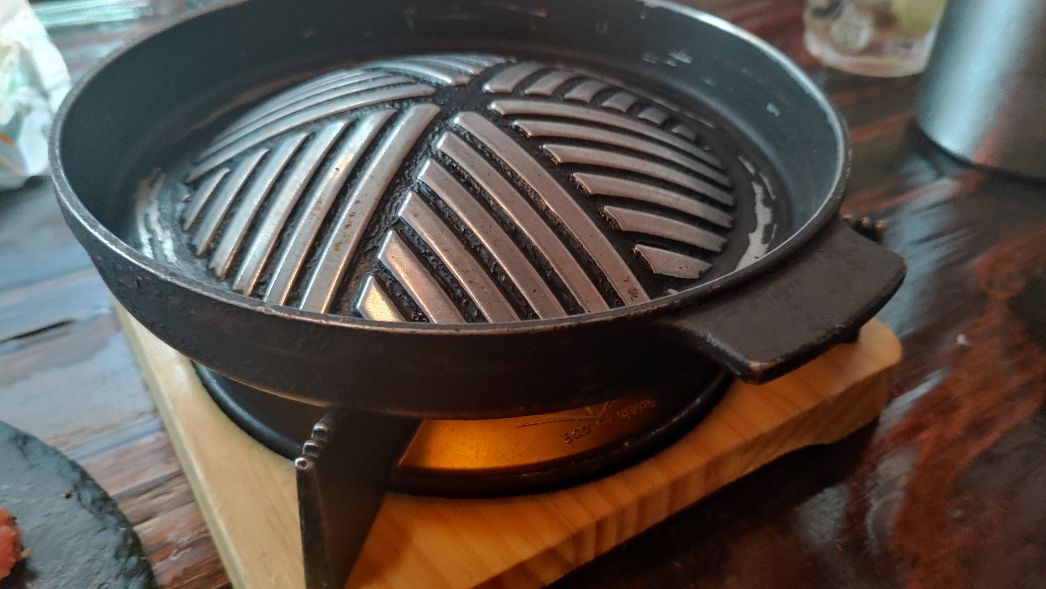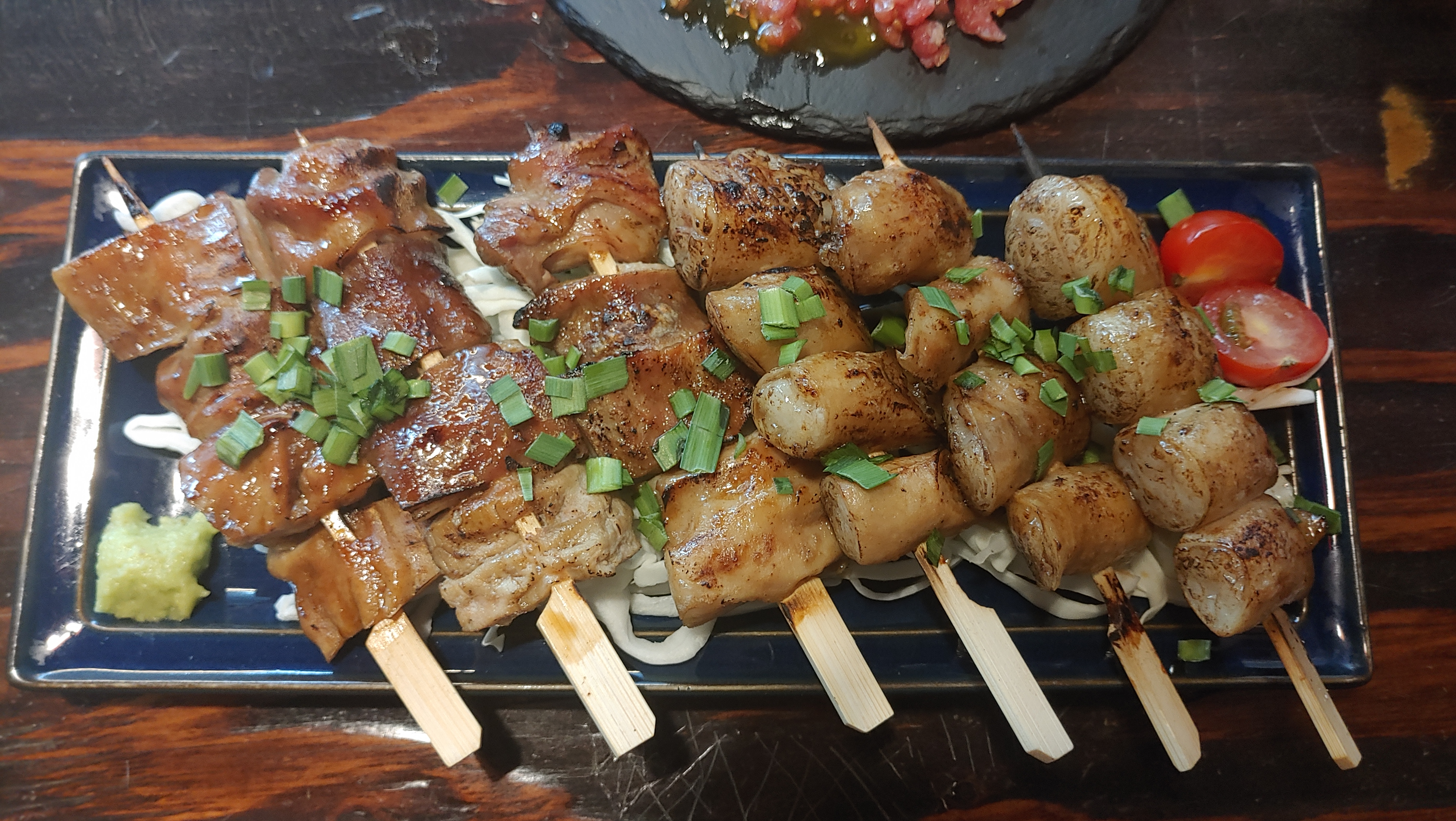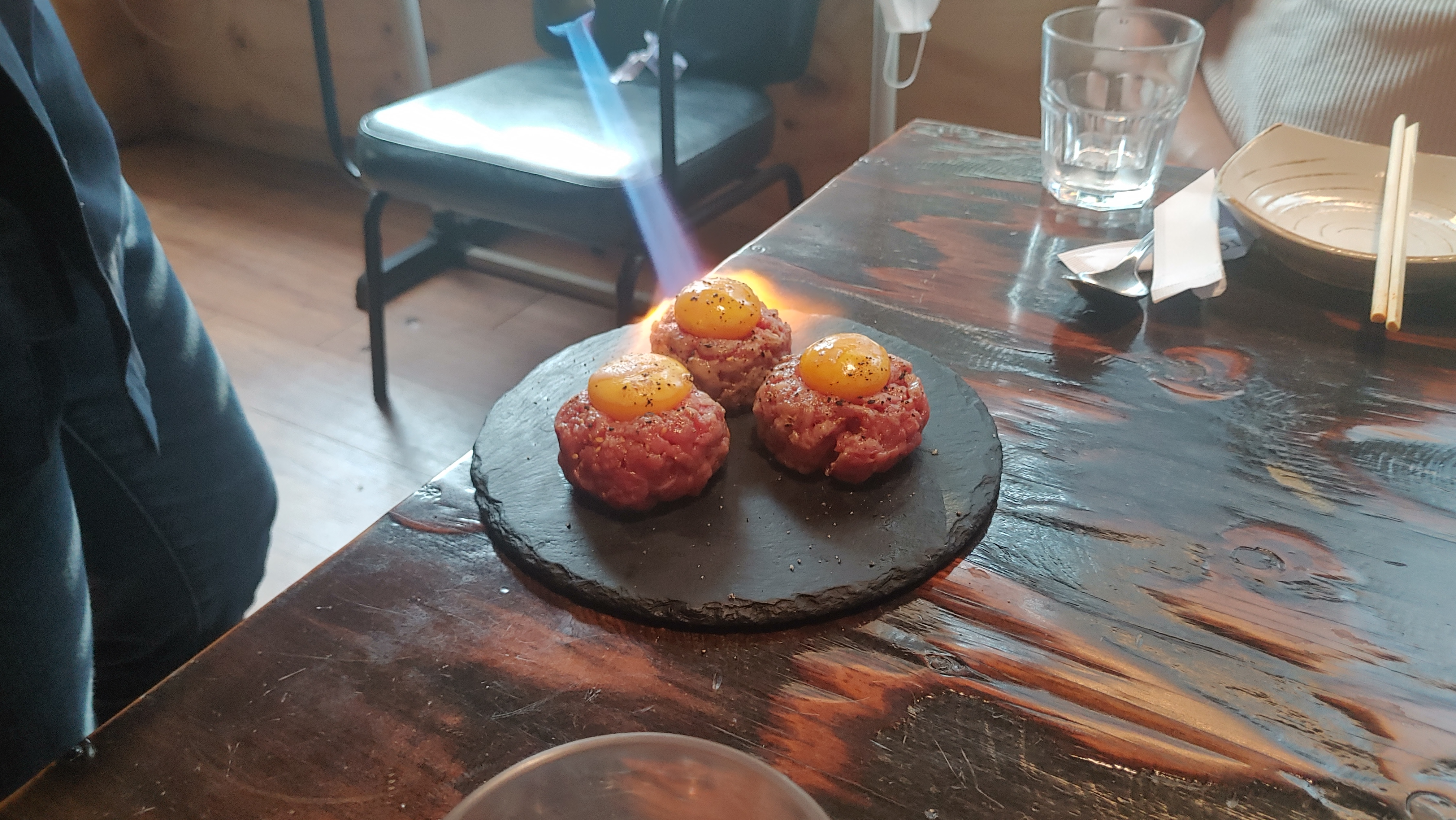 이중 일행은 간단하게 타마고 육회, 숯불 꼬치 세트를 주문했는데.
