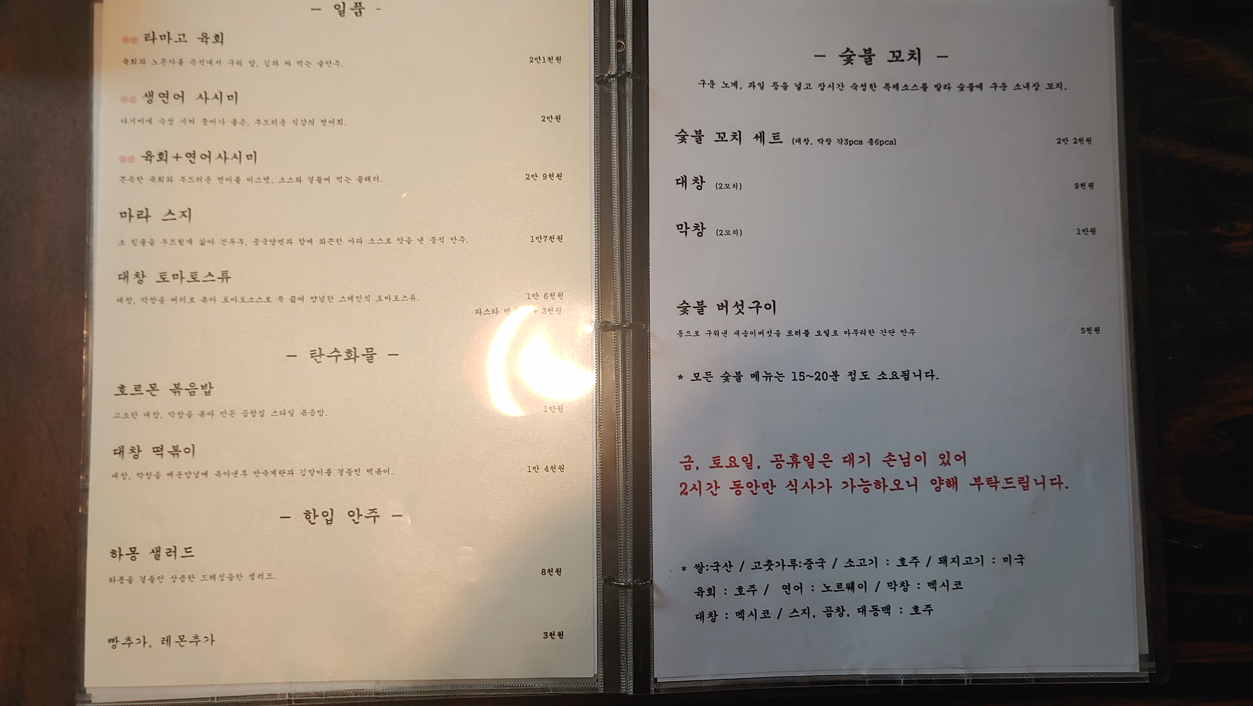 기름기가 너무 많고 겉이 기존에 먹던 대창들과 다르게 조금 질겨 남은 기억이 그닥 좋지 않은데 반해 같이간 일행은 다녀온지 며칠이 지났지만 지금도 대창 노래를 부르고 있습니다.