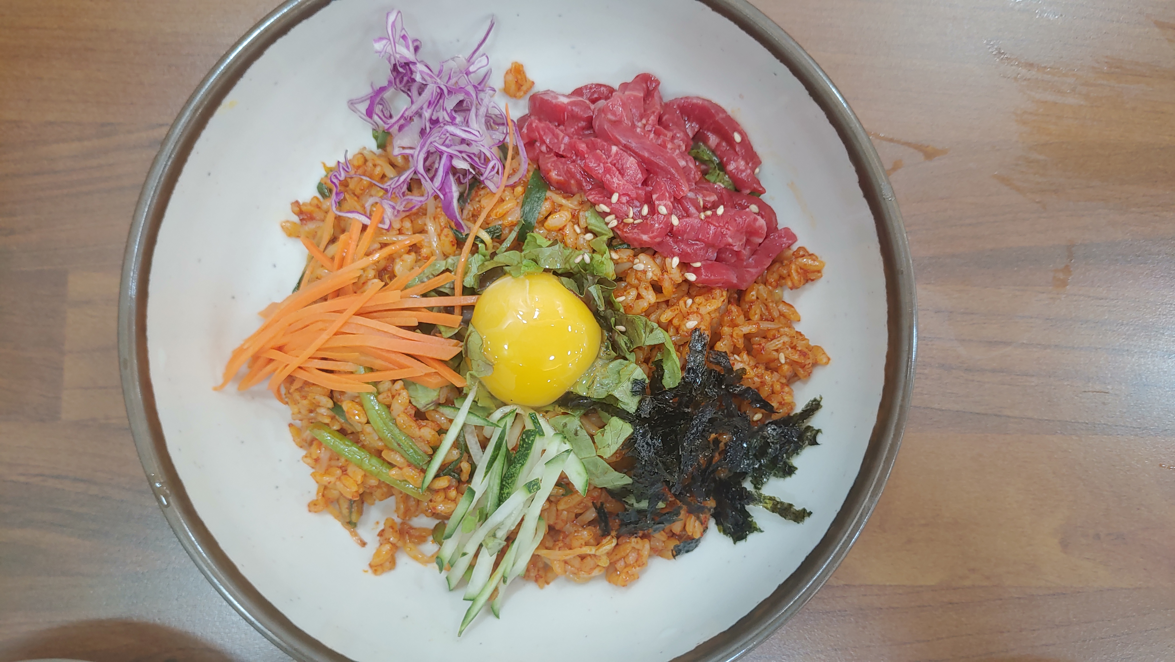 일행은 다음에 또 올것이기에 이번에는 육회비빔밥을 시켜먹었습니다. ... 뭐 비싸서 그런건 아니고...